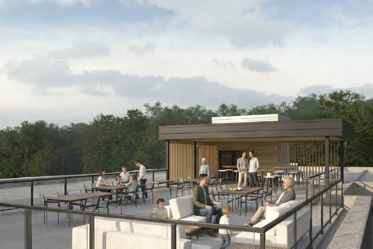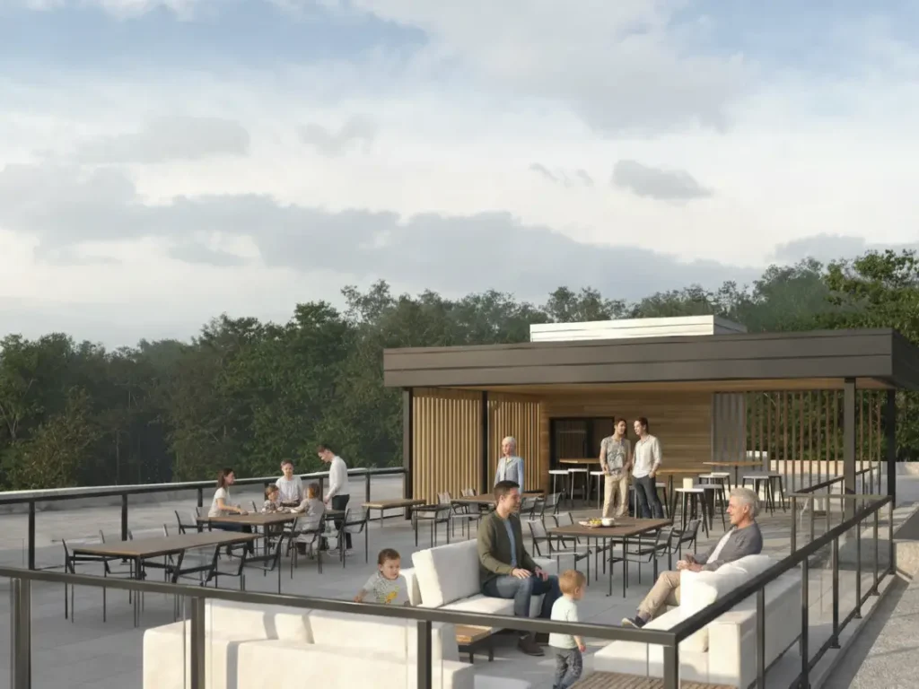 Ascenseur, stationnement intérieur et extérieur, bornes de recharge, toit-terrasse aménagé, salle commune, salle de sport et espaces de rangement font partie intégrante du projet. Avec 14 unités adaptées pour personnes à mobilité réduite, le Bella Terra propose un milieu de vie accessible, durable et conçu pour évoluer avec ses résidents.